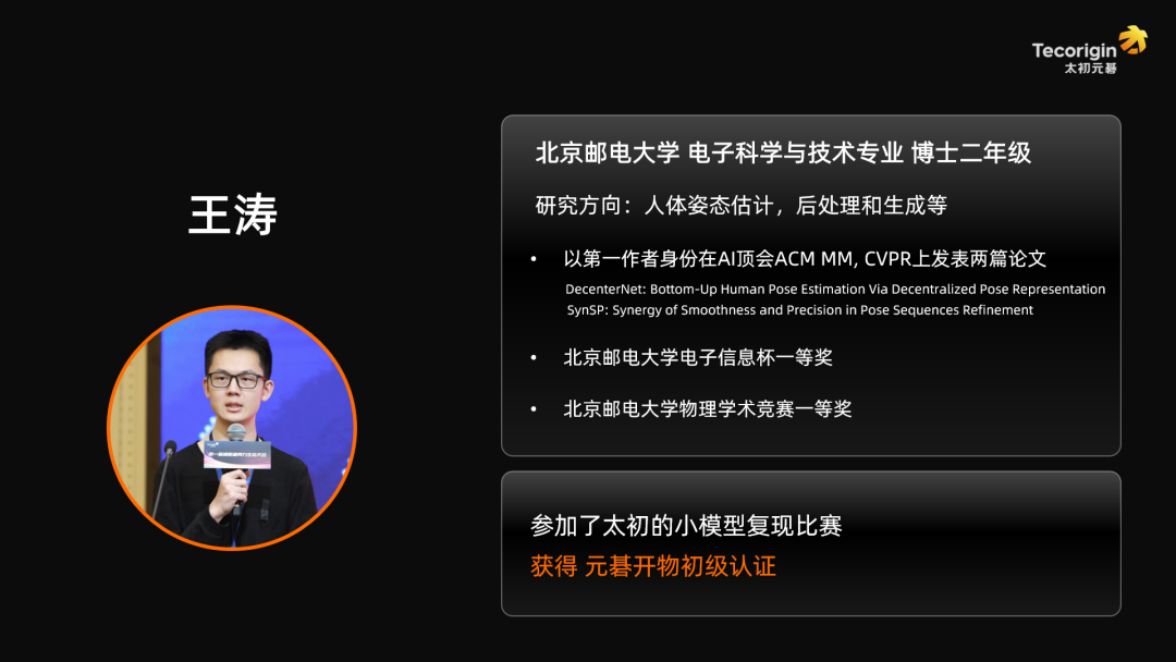 回顧整個(gè)參賽歷程,我不僅深化了對(duì)混合精度訓(xùn)練和多卡并行技術(shù)的理解,更在評(píng)委們嚴(yán)謹(jǐn)?shù)脑u(píng)審標(biāo)準(zhǔn)下提升了代碼接口規(guī)范化的意識(shí)。太初軟件生態(tài)的卓越適配性給我留下了深刻印象:僅需一條簡單命令即可完成模型設(shè)備的遷移,極大降低了科研人員的遷移成本。TecoPyTorch提供的教程文檔內(nèi)容豐富、易于理解,顯著降低了學(xué)習(xí)曲線。特別值得一提的是,太初AI加速卡在顯著提升訓(xùn)練速度的同時(shí),其超低功耗特性也為降低訓(xùn)練過程中的碳排放做出了重要貢獻(xiàn)。我十分期待在未來的科研工作中繼續(xù)使用太初AI加速卡,為推動(dòng)AI技術(shù)的發(fā)展貢獻(xiàn)自己的力量。