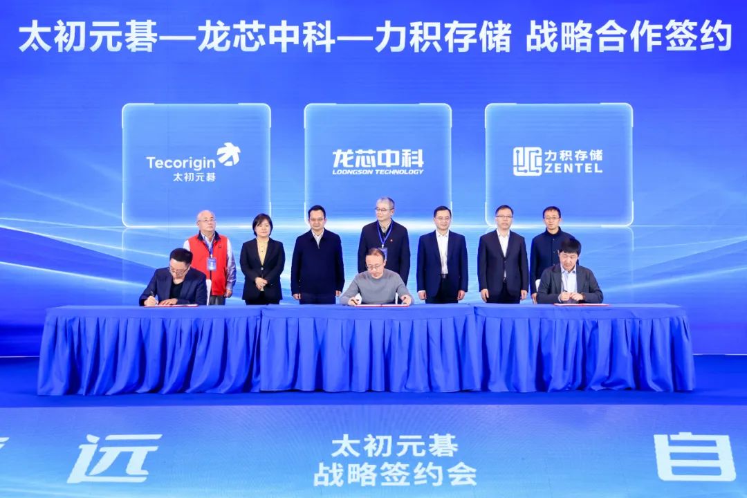 龍芯中科副總經(jīng)理范寶峽、力積存儲總經(jīng)理于曉及太初元碁CEO楊晉喆作為代表上臺,進(jìn)行了戰(zhàn)略產(chǎn)業(yè)合作簽約,三方將共同圍繞行業(yè)大模型共建、人工智能基礎(chǔ)設(shè)施建設(shè)、智算中心布局謀劃、產(chǎn)業(yè)智能升級等領(lǐng)域進(jìn)行創(chuàng)新共研和融合孵化,自主自強(qiáng)自新,開展高質(zhì)量、深層次、全方位的協(xié)同合作,實(shí)現(xiàn)資源和優(yōu)勢互補(bǔ),共同探索數(shù)智化轉(zhuǎn)型之路。