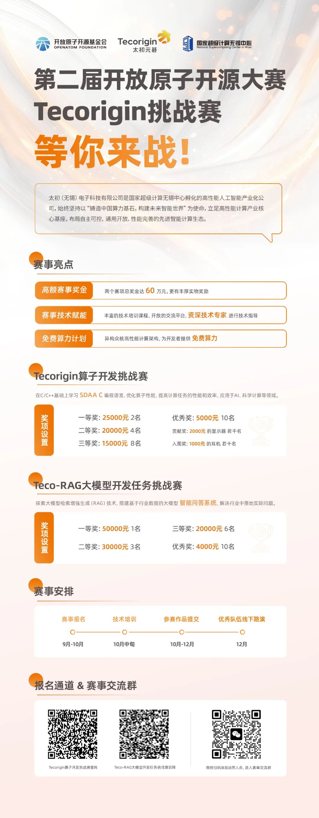 本屆大賽,太初元碁Tecorigin作為賽事共建方,為廣大開(kāi)發(fā)者帶來(lái)了兩項(xiàng)賽事:Tecorigin算子開(kāi)發(fā)挑戰(zhàn)賽和Teco-RAG大模型開(kāi)發(fā)任務(wù)挑戰(zhàn)賽。