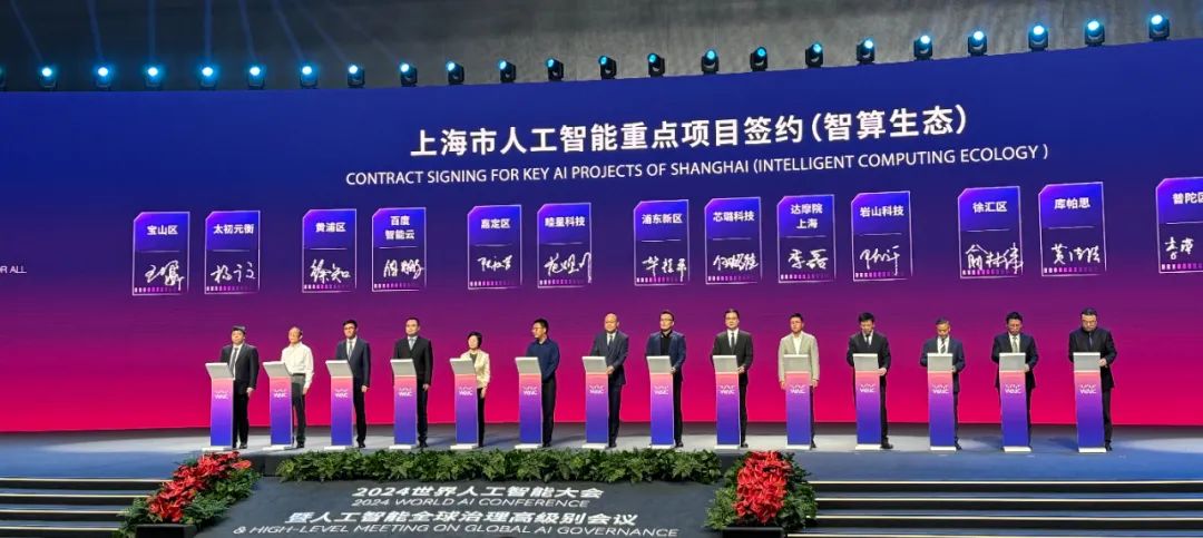 6日,“以共商促共享·以善治促善智”為主題的2024世界人工智能大會圓滿閉幕。在大會閉幕式上,楊廣文教授與寶山區(qū)領(lǐng)導(dǎo)共同簽約上海市人工智能重點項目(智算生態(tài))。雙方將攜手打造"太初元碁HPC+AI國產(chǎn)算力系統(tǒng)平臺",平臺覆蓋人工智能及科學(xué)計算領(lǐng)域產(chǎn)業(yè)應(yīng)用,以國產(chǎn)高端智能計算系統(tǒng)為核心,采用異構(gòu)眾核架構(gòu),支持千卡以上集群建設(shè)與調(diào)度管理,實現(xiàn)對千億、萬億參數(shù)大模型訓(xùn)推等人工智能應(yīng)用場景的支持。同時,為電力能源、水利氣象、生物醫(yī)學(xué)等傳統(tǒng)科學(xué)計算領(lǐng)域提供混合精度人工智能算法創(chuàng)新研發(fā)平臺,為數(shù)字經(jīng)濟產(chǎn)業(yè)高質(zhì)量發(fā)展提供新質(zhì)生產(chǎn)力。