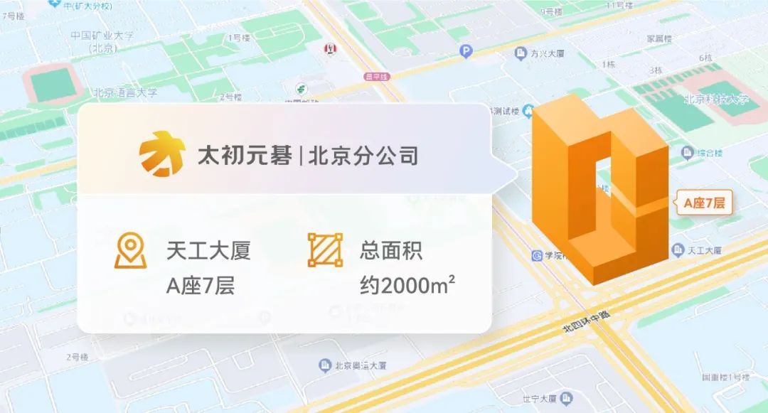 太初元碁Tecorigin北京分公司位于大廈A座7層,總面積約2000平方米。辦公環(huán)境高端舒適,整體裝修大氣精致,給人舒服愉悅的視覺觀感。