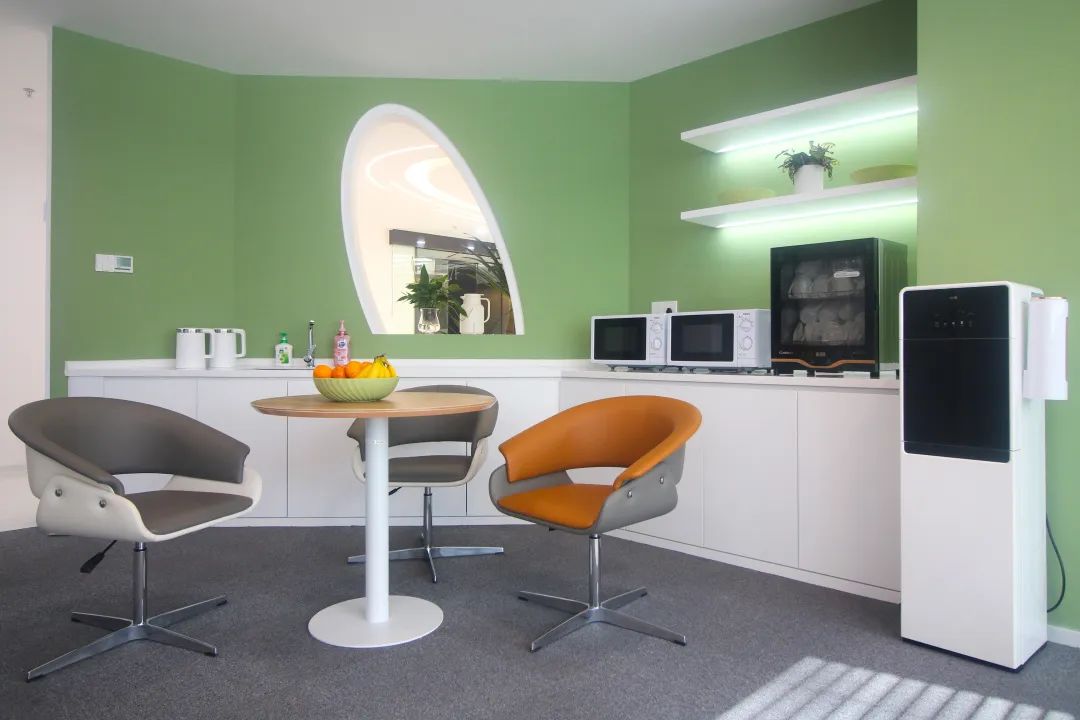 除了環(huán)境設計,公司還提供冰箱、微波爐、咖啡機等設備便捷辦公生活、隨處可見的綠植凈化空氣,將“以人為本”的設計思路,貫穿始終,有效改善員工獨立及協(xié)同辦公的氛圍、提升辦公舒適度。